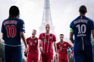 拜仁官方社媒发布海报为这场强强对话预热,拜仁方面罗本、里贝里、施魏因斯泰格出镜,巴黎则有小罗、伊布在列。