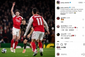 斯坦尼西奇社媒晒出比赛照片,配文:“这是一个难以接受的结果,但我们依然保持积极的态度,继续努力。感谢大家的支持。”