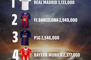 国际迈阿密如今已与皇马、巴萨、巴黎圣日耳曼和拜仁慕尼黑并肩,组成全球最顶级的球衣销售阵营。这五家俱乐部在2025年均售出超过200万件球衣。作为MLS冠军,国际迈阿密的销量达到2,166,000件,而这一切都源于梅西自2023年7月加盟佛罗里达以来所带来的巨大推动力。与此同时,葡萄牙球星C罗凭借强大的个人号召力,帮助利雅得胜利卖出1,281,000件球衣。