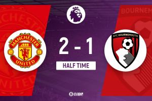 曼联对伯恩茅斯的比赛是本赛季英超预期进球数最高(3.6),射门次数最多(24次),以及对方禁区触球次数最多(41次)的上半场比赛。